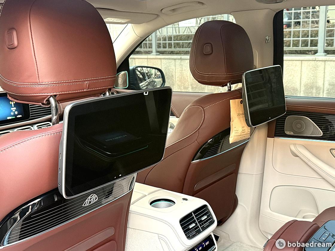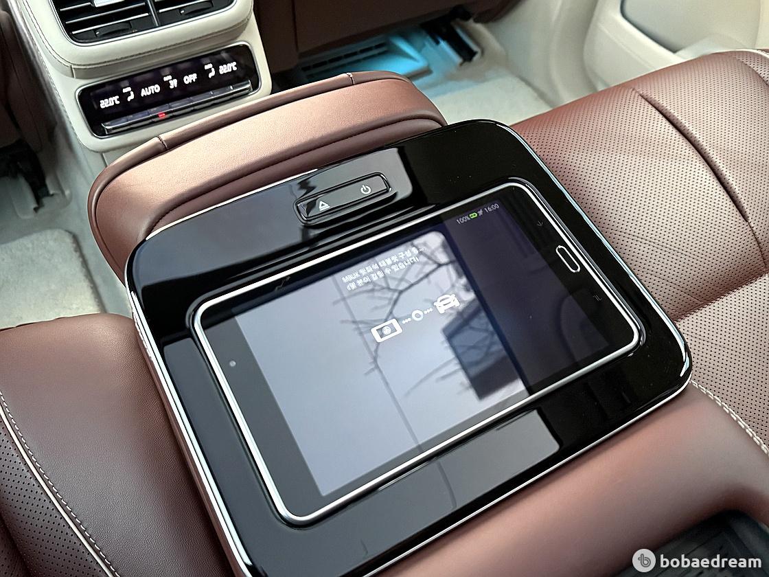 센터 콘솔의 기본 MBUX 후방 태블릿(MBUX Rear Tablet)이나 뒷좌석