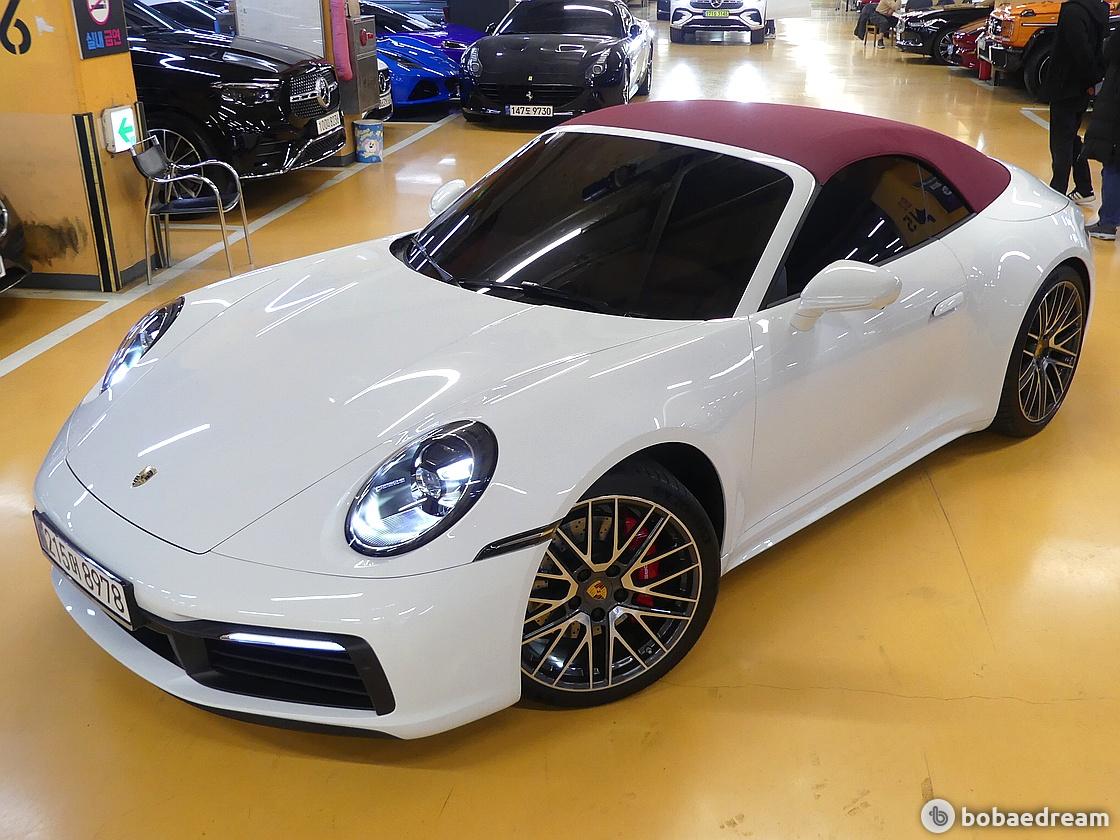 2025년 4월 등록 포르쉐 911 카레라 4S 카브리올레 모델을 판매합니다.》정식출고/무사고 운행》최상의 밸런스 4륜구동/6기통 박서엔진 오픈카》우아한 화이트바디+레드 인테리어+레드 소프트탑▶본 차량상태..- 정식출고